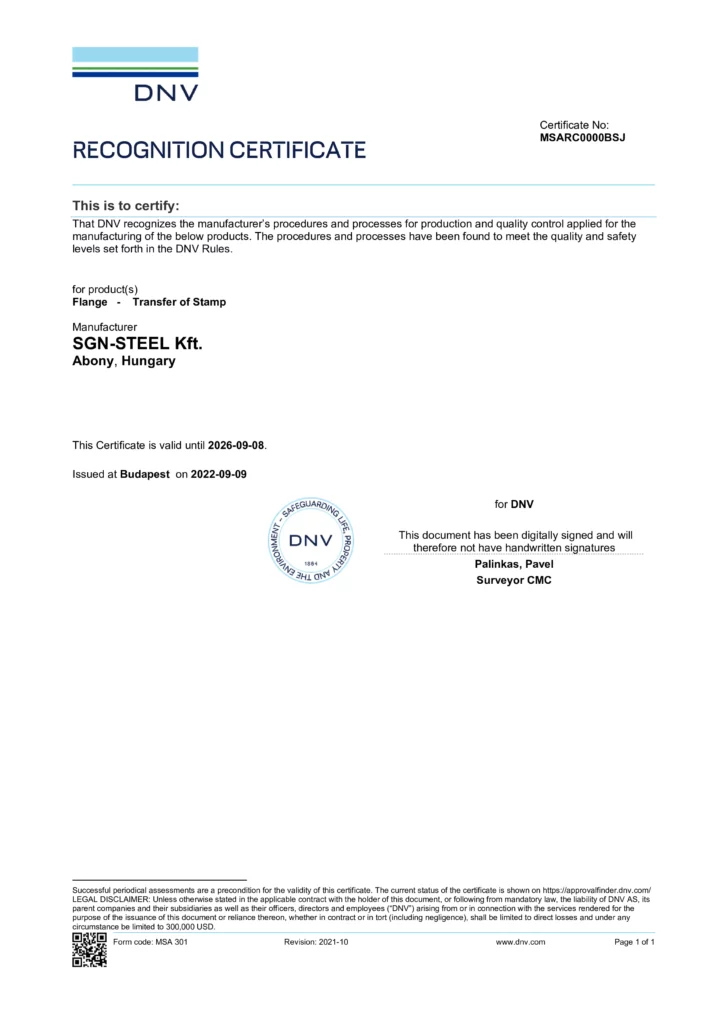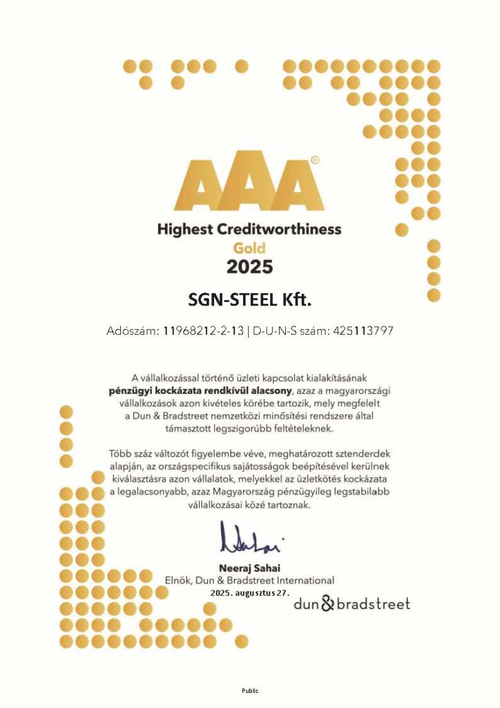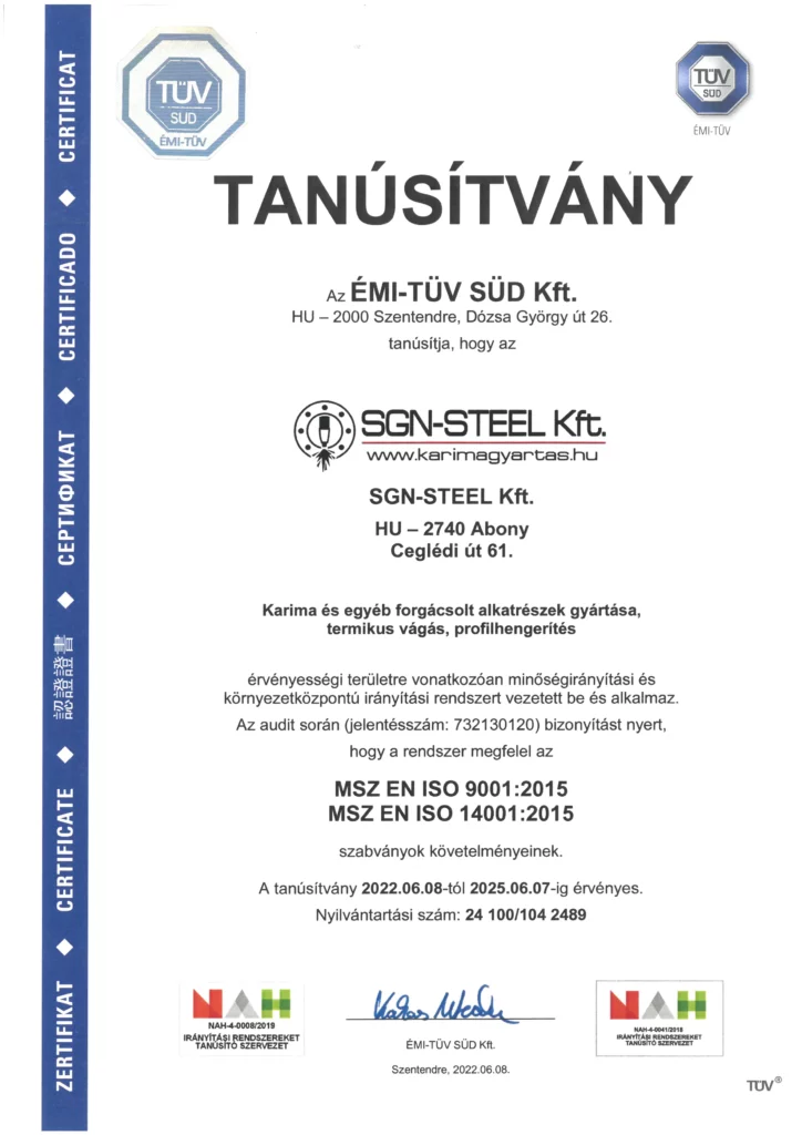 A 2000-ben alapított, jelenleg több, mint 80 főt foglalkoztató SGN-STEEL Kft. Magyarország szívében, Budapesttől az M4 autópályán 80 km-re lévő abonyi telephelyén található. Már induláskor – az emberek foglalkoztatása és a munkahelyteremtés mellett – megfogalmazott célunk volt a csőkarima gyártása és kereskedelme az energiaipar és a vegyipar területeire. A piacon szerzett tapasztalataink arra ösztönöztek minket, hogy a szabványos méretű karimák mellett az egyéni méretekre, különleges anyagminőségekre fektessük a hangsúlyt. Az évek során az is bebizonyítást nyert, hogy a pontos, minőségi munka mellett a piaci részesedést akkor lehet növelni, hogyha a megszokottnál rövidebb szállítási időt is kínálunk partnereiknek.