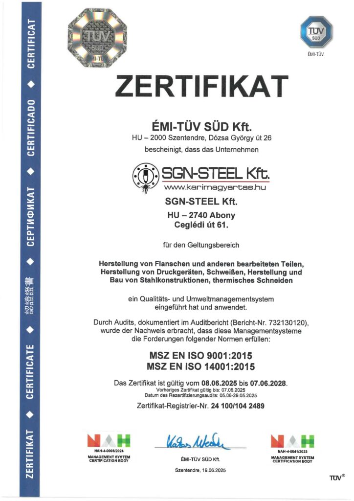 Modern üzleti és termelési kihívásokhoz való alkalmazkodását segítő fejlesztések a SGN-STEEL Kft. részére (2022)